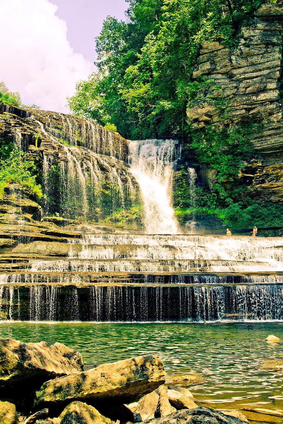 The water here is cool and invigorating, providing refreshing relief during Tennessee’s warm summer months. The atmosphere buzzes with energy, especially on busy weekends when the falls draw many visitors. Facilities are basic, emphasizing the primitive nature of this natural swimming hole.